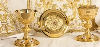 Surtido en productos orfebres como caliz, copones, paneras, relicarios, incensarios, acetres, hostiarios, cadeleros, porta estandartes etc.